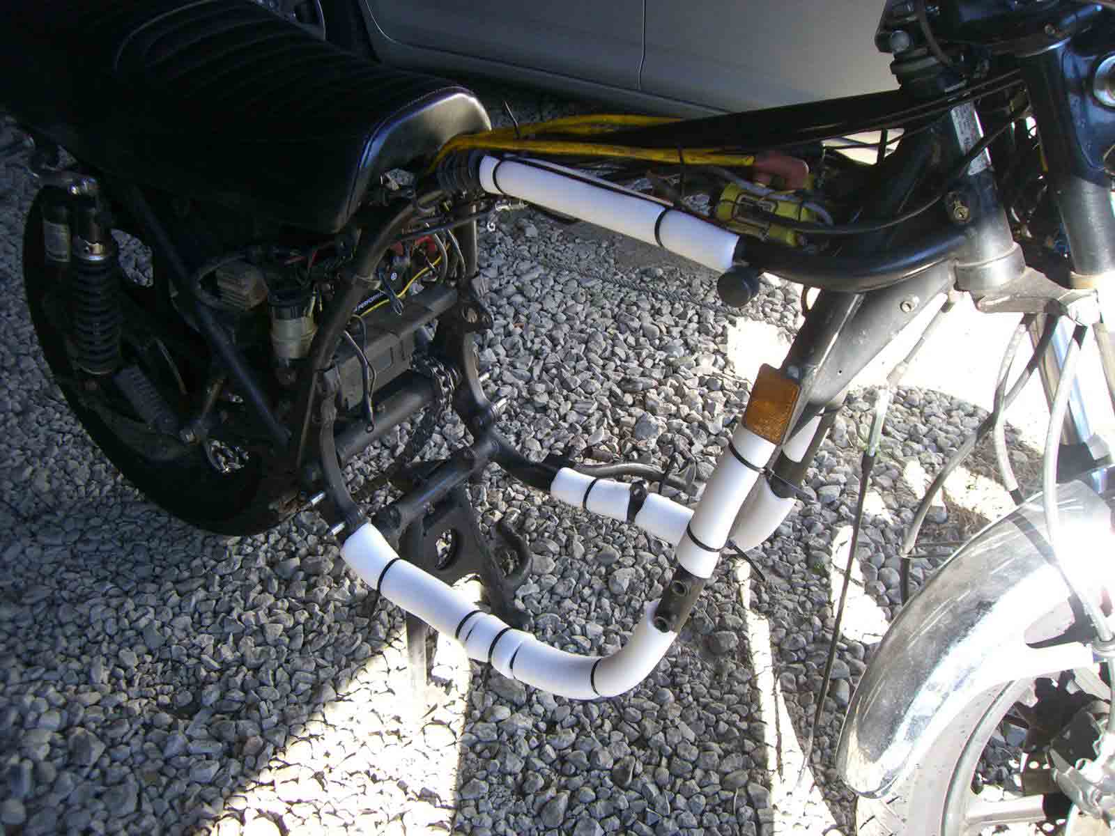 先ずはフレームに傷が付かないように、配管の断熱材をインシュロックで固定して養生する。